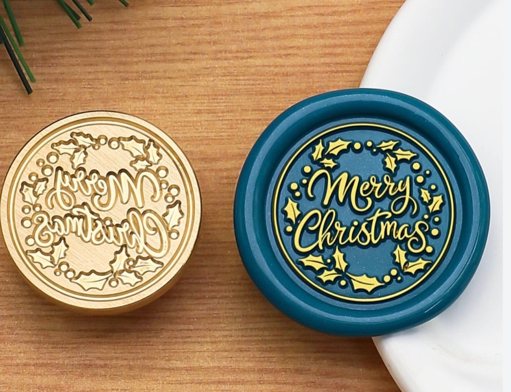 【スタンプ(ヒイラギ/MERRY CHRISTMAS)】直径2.5cm